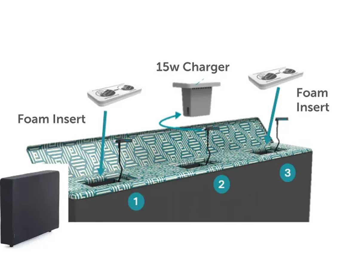 - Accommodates up to 3 charging stations per Side.